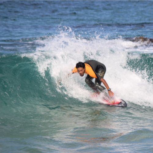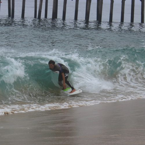 スキムボードとは、波と呼吸を合わせるように波と遊ぶ